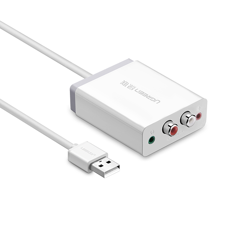 Card sound USB to RCA hỗ trợ Mic + tai nghe Ugreen 30521 chính hãng
