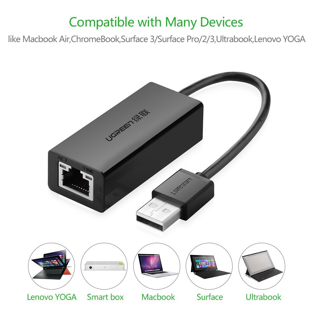 - Cáp Chuyển Đổi Ugreen USB 3.0 Sang RJ45 20255 là giải pháp mở rộng, thêm 1 cổng LAN tốc độ cao Gigabit cho các dòng máy này. Hỗ trợ kết nối và thiết lập một
