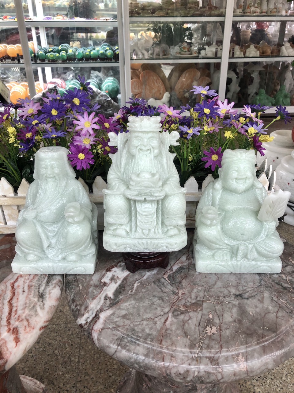 Chất liệu: Đá đá cẩm thạch trắng xanh Kích thước: Ông Kim tiền ( Dài 11cm x Rộng 8cm x Cao 15cm ) Bộ Tài