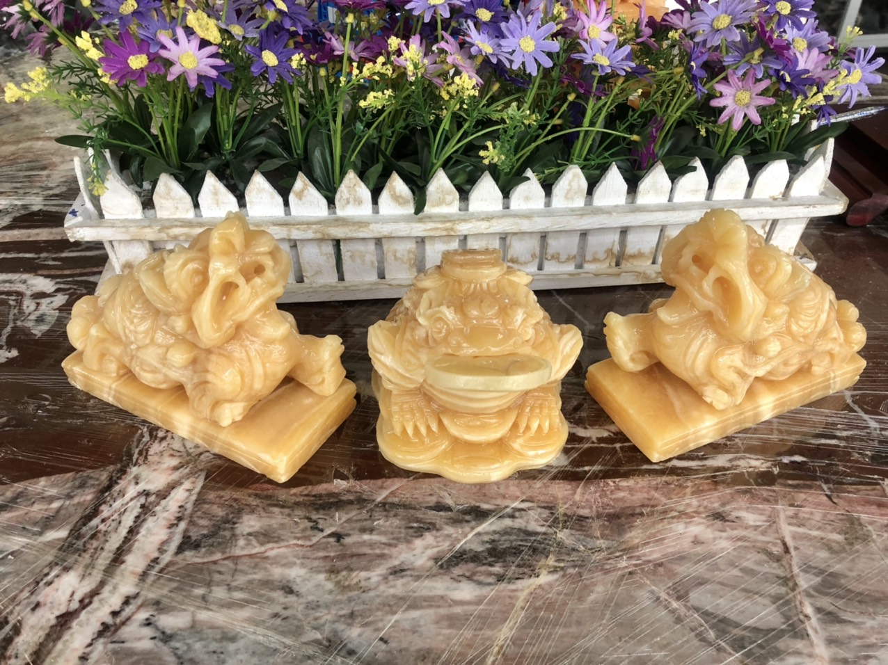 ✨Bộ combo Tỳ Hưu dài 15cm và Tượng Cóc Ba Chân, Cóc Ngậm Tiền, Thiềm Thừ phong thủy dài 15 cm đá ngọc hoàng long