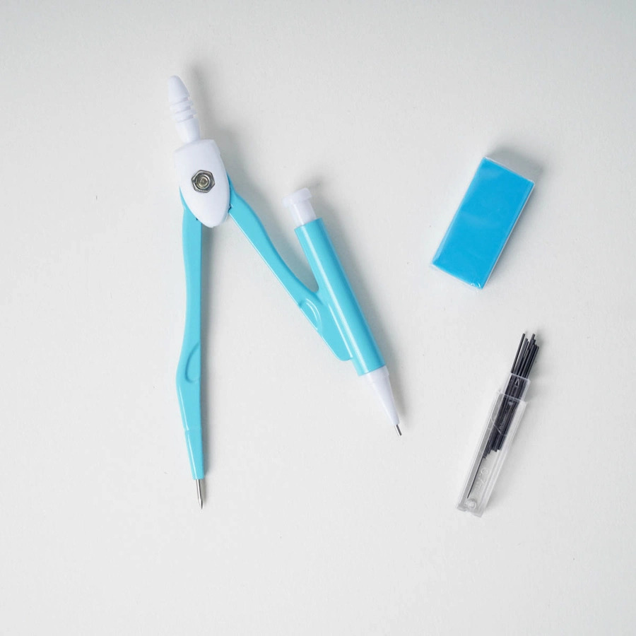 - Bộ sản phẩm gồm 7 món: compa, ruột chì kim, tẩy chì, thước 15cm, đo độ và 2 eke - Compa có đường kính: 280mm sử dụng chì kim - Bộ sản phẩm đóng