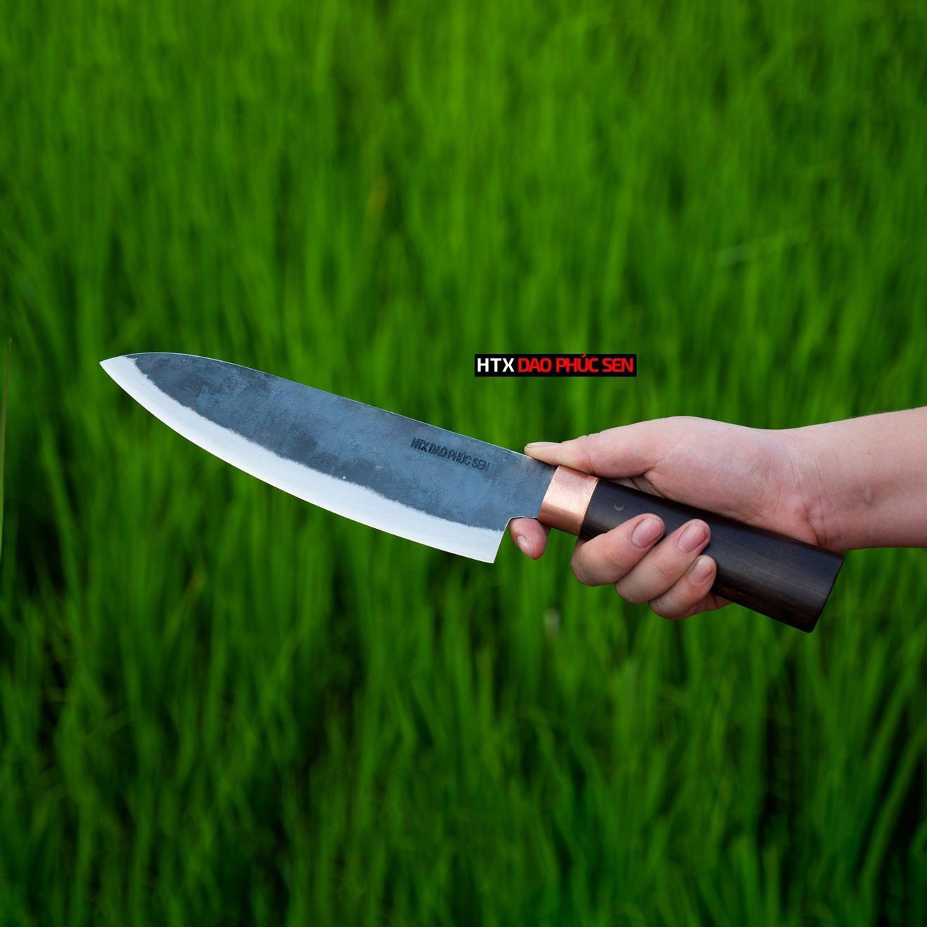 - Chất liệu cán: Gỗ mun, keo liên kết đảm bảo độ bền và vẻ đẹp thẩm mỹ . Ngoài ra cán dao được thiết kế vừa vặn ôm sát tay người dùng nên dễ dàng thao tác ít tốn thời gian.