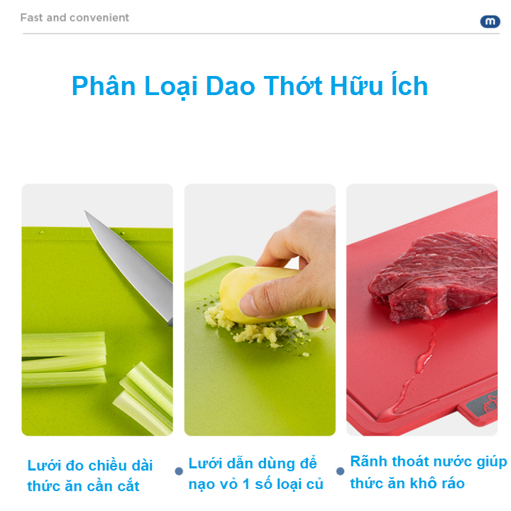 - Không còn phải để thực phẩm sống chín dùng chung bộ dao thớt tạo điều kiện vi khuẩn sinh sôi. MR1002 Có Hiệu Quả Diệt Khuẩn 99.99%
