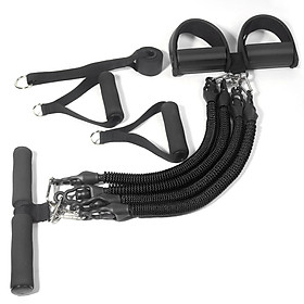 Bộ dây đàn hồi tập thể lực có 5 dây, mỗi dây có mức trọng lượng khác nhau, từ nhẹ tới nặng (8 lbs, 15 lbs, 20 lbs, 25 lbs, 30 lbs) có thể
