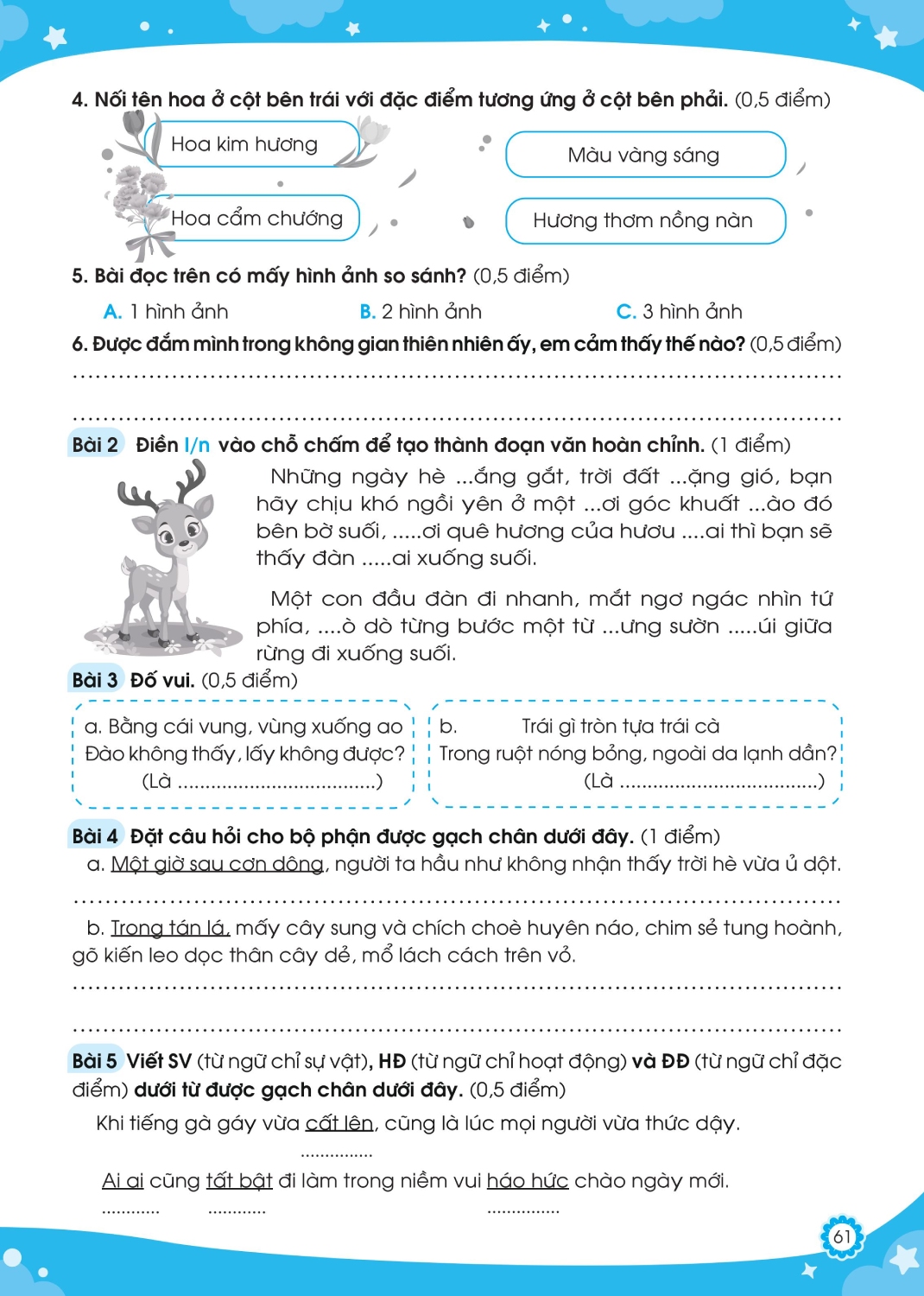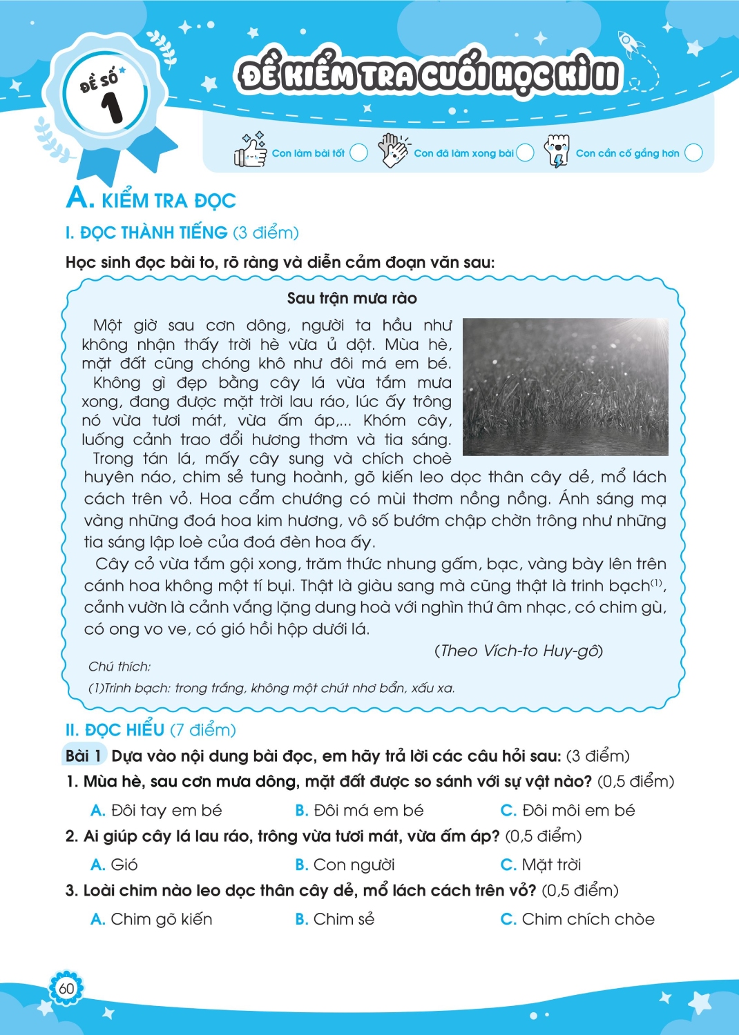 Đề kiểm tra giữa học kì 1 | Tiếng Việt lớp 3 | Cánh diều | Đề số 1 | Cô Uyển Uyển