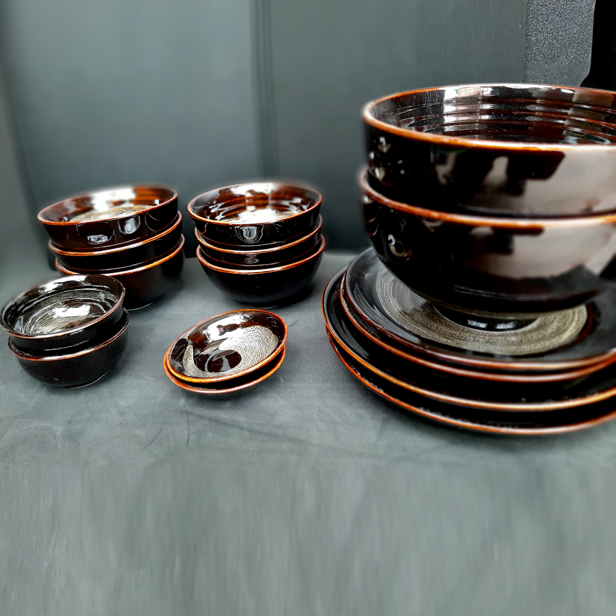 ️Bộ đồ ăn nâu gốm số 1 Chất liệu : gốm sứ Bát Tràng cao cấp Màu sắc :ngoài đen trong nâu gốm - đây là tông màu cực sang chảnh và giữ bền màu