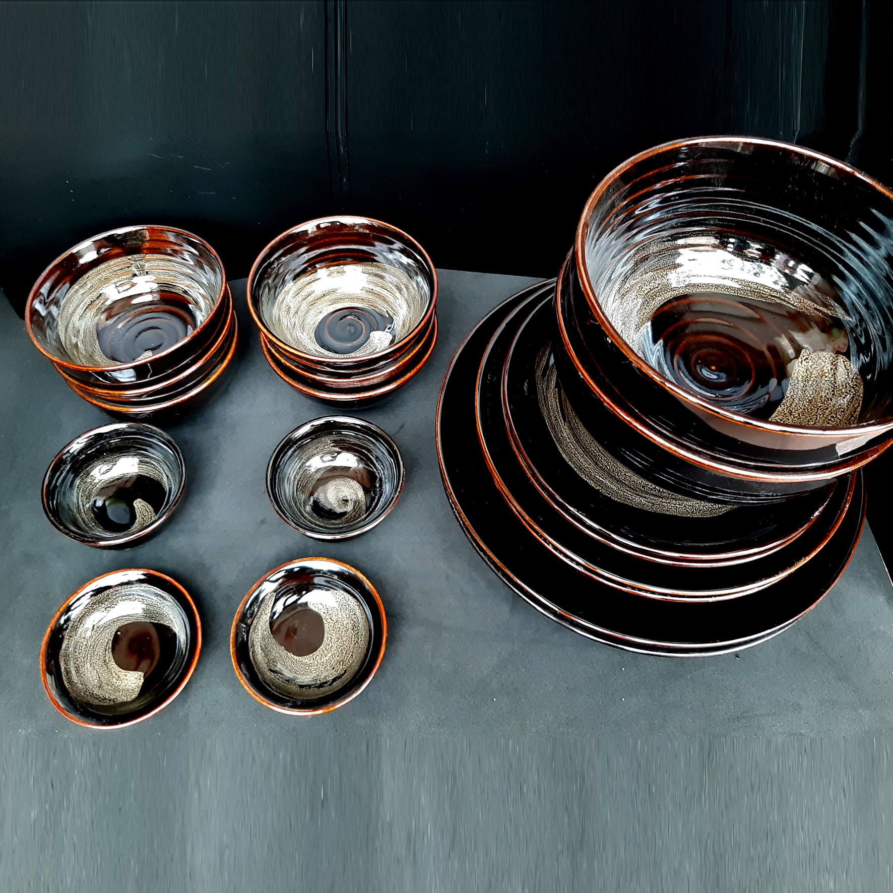 Bộ đồ ăn men cánh gián hoả biến sản phẩm đẹp và đẳng cấp ( khác với sản phẩm gốm thông thường của bát tràng) sản phẩm sứ Unika Bát Tràng nung ở nhiệt độ