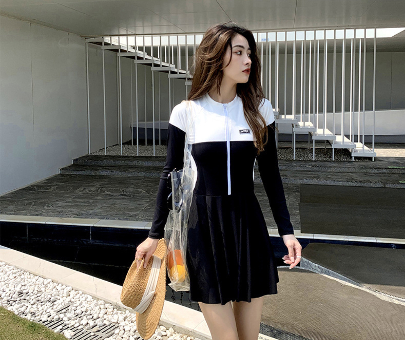 ✨Bộ đồ bơi bikini nữ 1 mảnh kín đáo đi tắm biển giấu bụng váy liền áo dài tay chống nắng - B.27