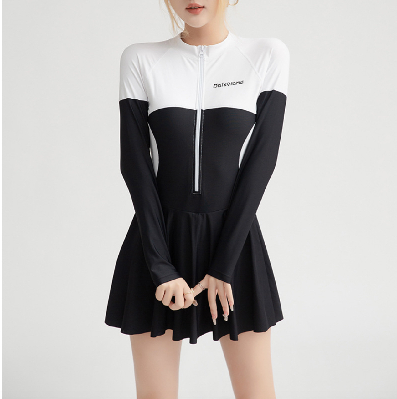✨Bộ đồ bơi bikini nữ 1 mảnh kín đáo đi tắm biển giấu bụng váy liền áo dài tay chống nắng - B.27
