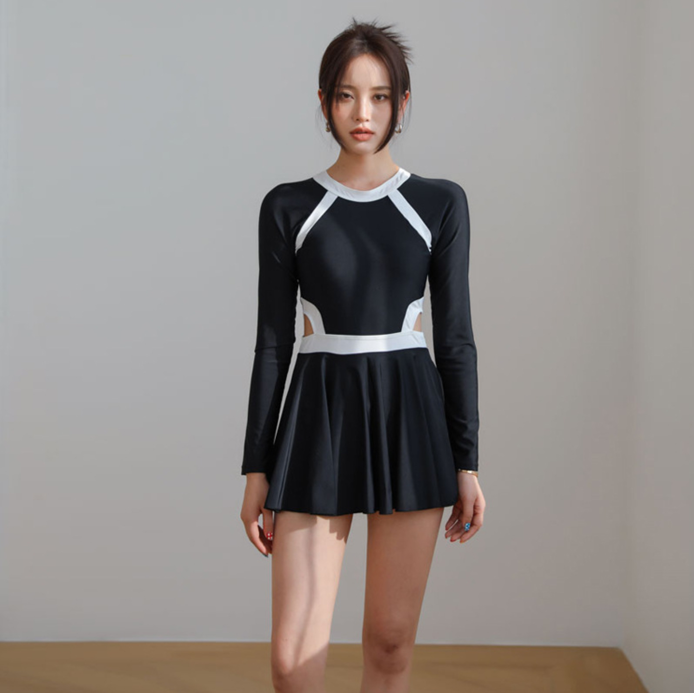 ✨Bộ đồ bơi bikini nữ kín đáo 1 mảnh đi tắm biển giấu bụng váy liền áo dài tay - B.42