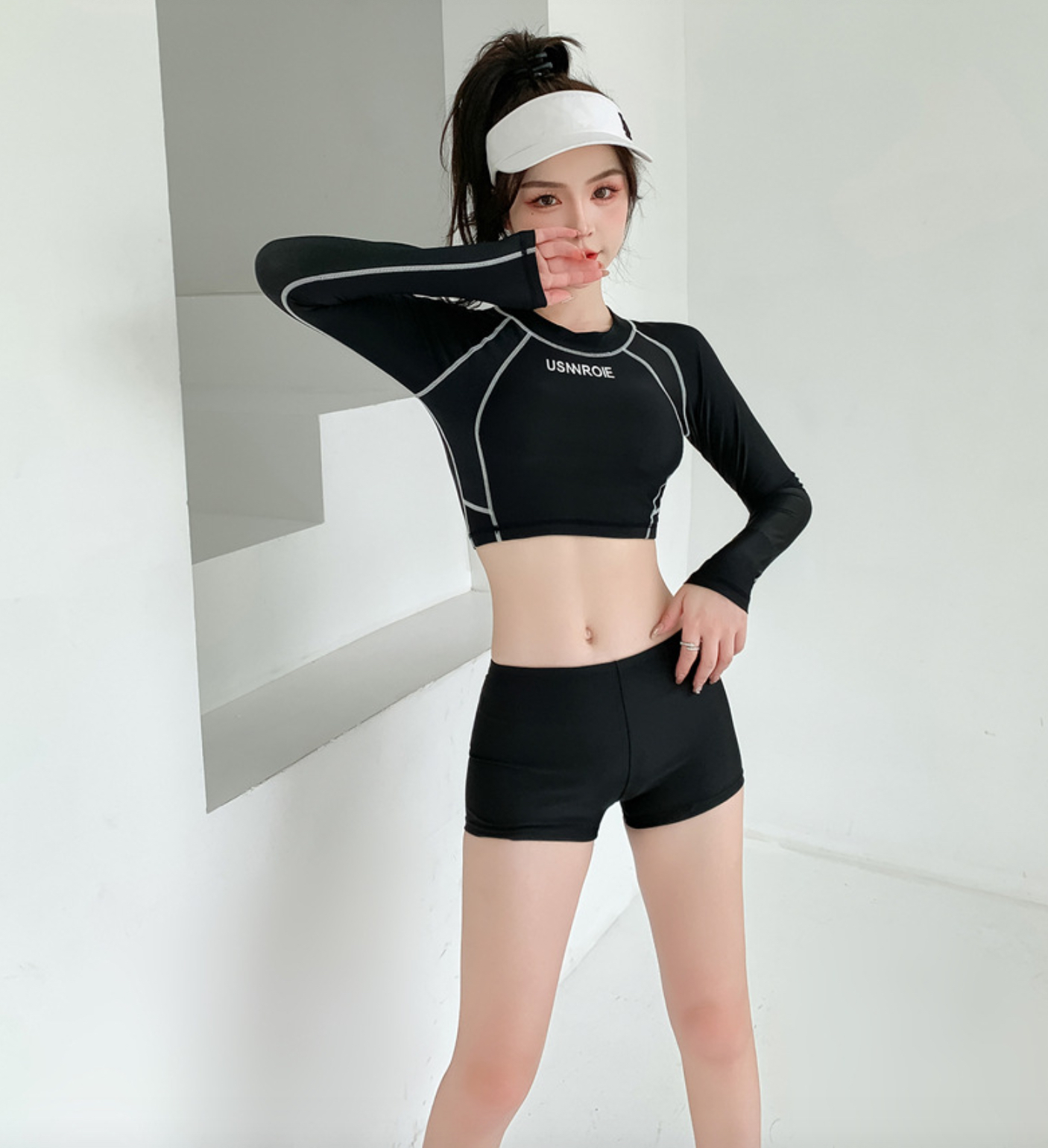 Set Đồ Bơi Nữ Rời Đùi Dài Tay Đi Biển Đi Bơi Chất liệu Polyester 88%, mật độ dệt vừa Áo có sẵn lớp đệm, hông áo có thể rút lên làm croptop cá tính