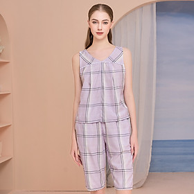 Đồ bộ nữ,đồ ngủ mặc nhà lửng 9 tấc vải lụa mango họa tiết sọc caro dễ thương size 45-57kg. Chất : lụa mềm mịn,mát,không nhăn không xù ,họa tiết caro siêu xinh. FreeSize :45-57kg