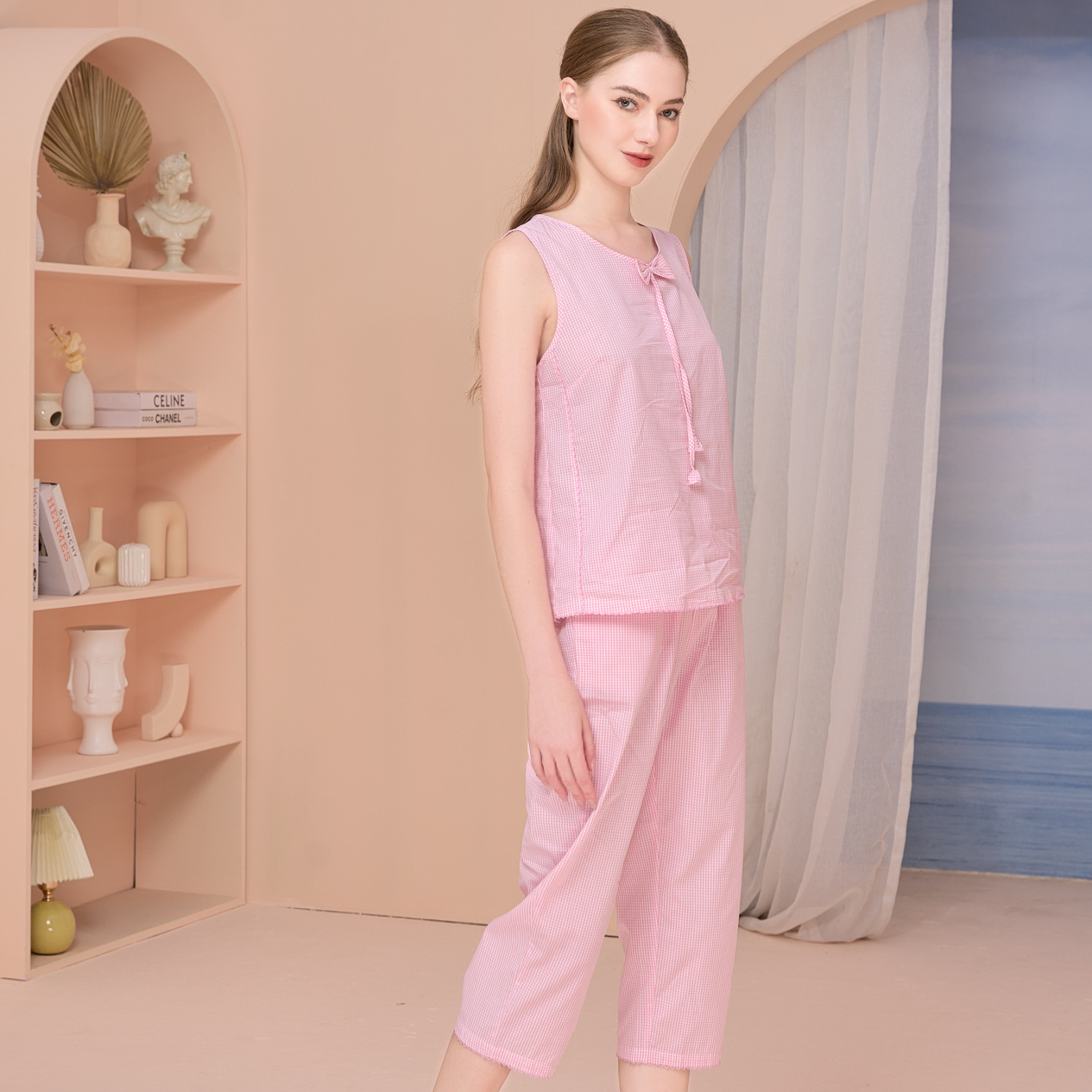 Đồ bộ nữ,đồ ngủ mặc nhà lửng 9 tấc vải lụa mango họa tiết sọc caro dễ thương size 45-57kg. Chất : lụa mềm mịn,mát,không nhăn không xù ,họa tiết caro siêu xinh. FreeSize :45-57kg
