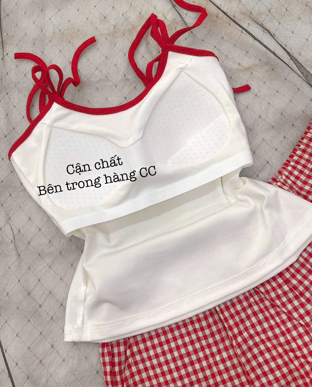 Thương hiệu: Sanny House Tên sản phẩm: Bộ đồ ngủ Chất liệu: cotton cao cấp mềm mịn, co giãn, thấm hút tốt Kiểu dáng: gợi cảm, trẻ trung, hiện đại Màu: trắng caro đỏ Size: