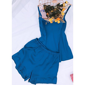 Bộ đồ ngủ hai dây màu xanh coban, điểm nhấn bằng phần ren phối ngực tạp nét quyến rũ , thân sau lưng áo xẻ tà, quần phối ren sexy gợi cảm - Màu sắc: xanh