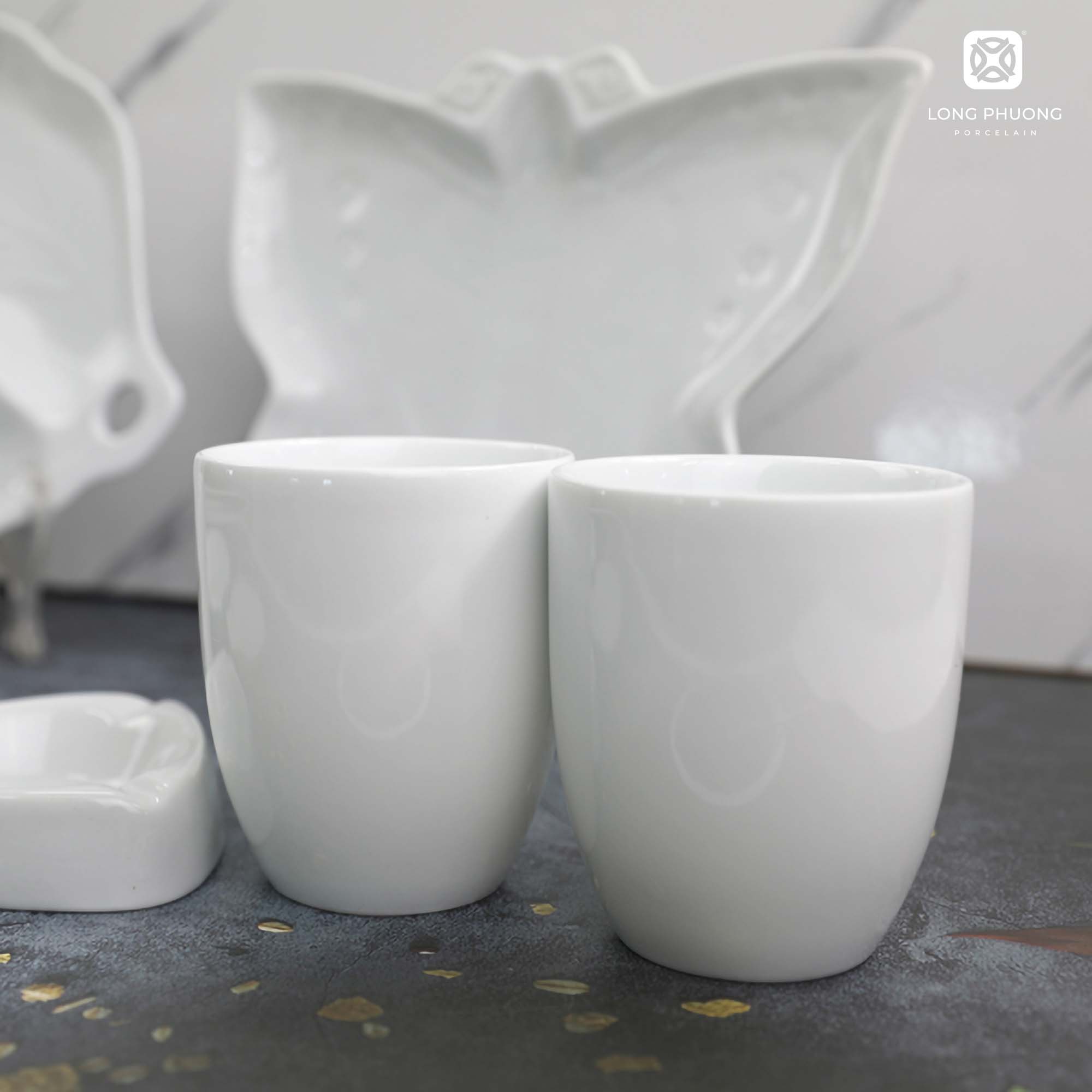 02 chiếc cốc sứ trắng cao cấp 320mlChất sứ đanh bền được nung qua 03 lần ở nhiệt dộ lên tới 1380 độ C, bên ngoài còn được bao phủ bởi một lớp men trắng bóng, láng mịn xịn xò. Tạo nên sự hào hợp sang trọng, tinh khiết cho cả bộ sản phẩm.