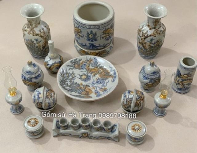 Combo đồ thờ men rạn đắp nổi cao cấp Bát Tràng