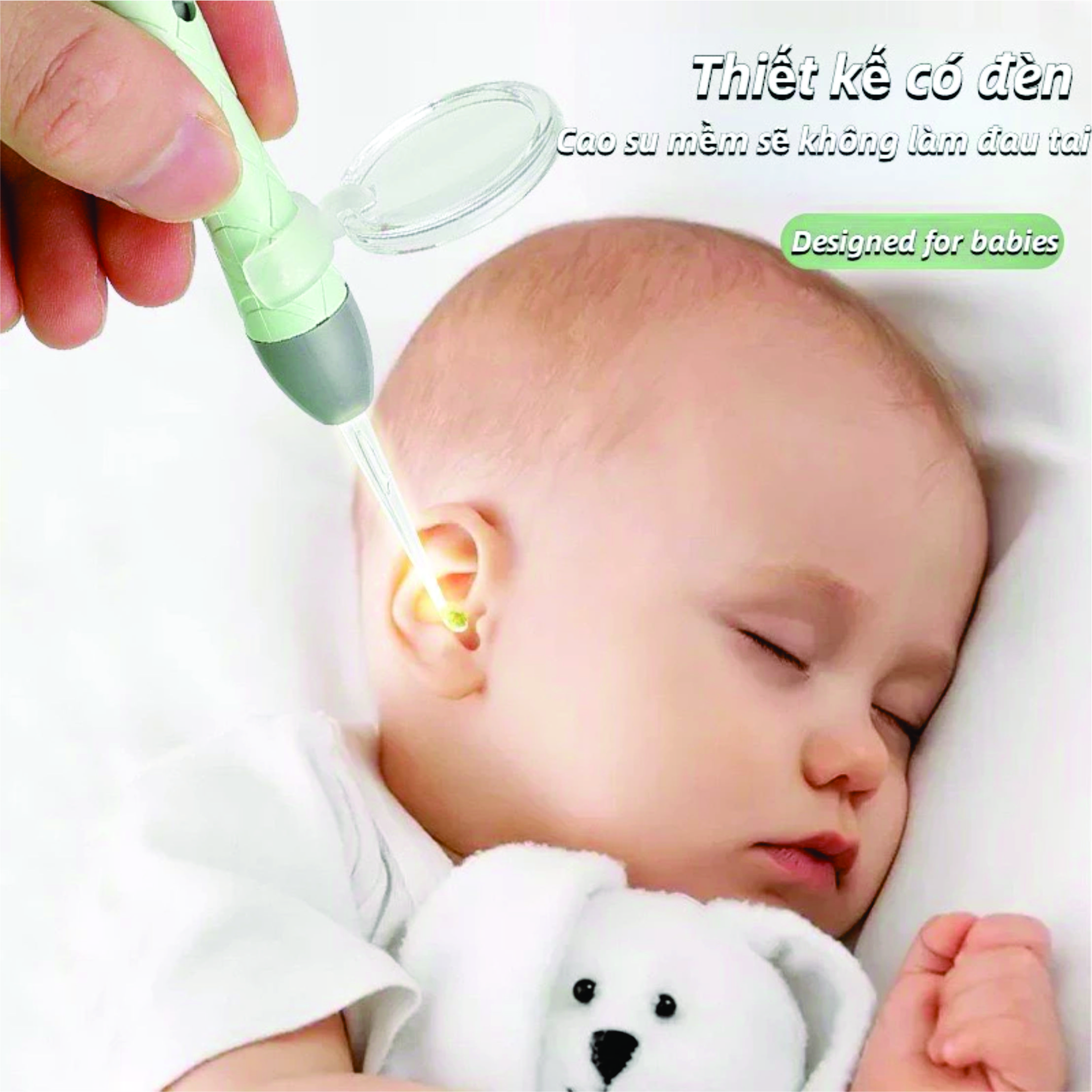 Đầu ngoáy tai bằng silicon mềm, có độ dẻo dai tốt, thích hợp cho việc vệ sinh tai hàng ngày, dễ dàng lấy ráy tai.