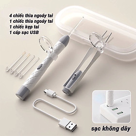 ✨Bộ Dụng Cụ Lấy Ráy Tai Có Đèn Dạ Quang Cho Bé, Tặng kèm 4 đầu ngoáy tai, món vệ sinh tai mũi chuyên nghiệp ( LOẠI XỊN SẠC USB )