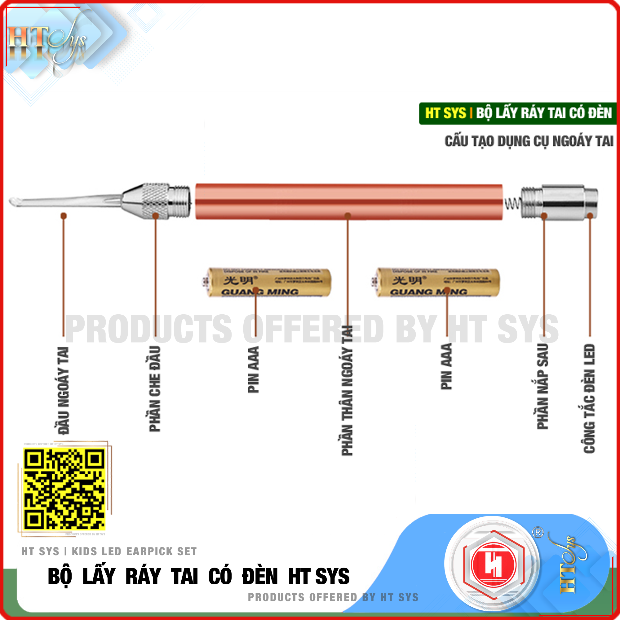 Bộ Dụng Cụ Ngoáy Tai có Đèn Cho Bé HT SYS Bộ Dụng Cụ Lấy Ráy Tai - Ngoáy Tai HT SYS Flashlight Earpick - Bộ Lấy Ráy Tai Tích Hợp Đèn Led Cao Cấp