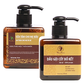 Bộ sản phẩm bao gồm: 1 Sữa tắm thảo mộc 250 ml + 1 Dầu gội cốt bồ kết 250 ml