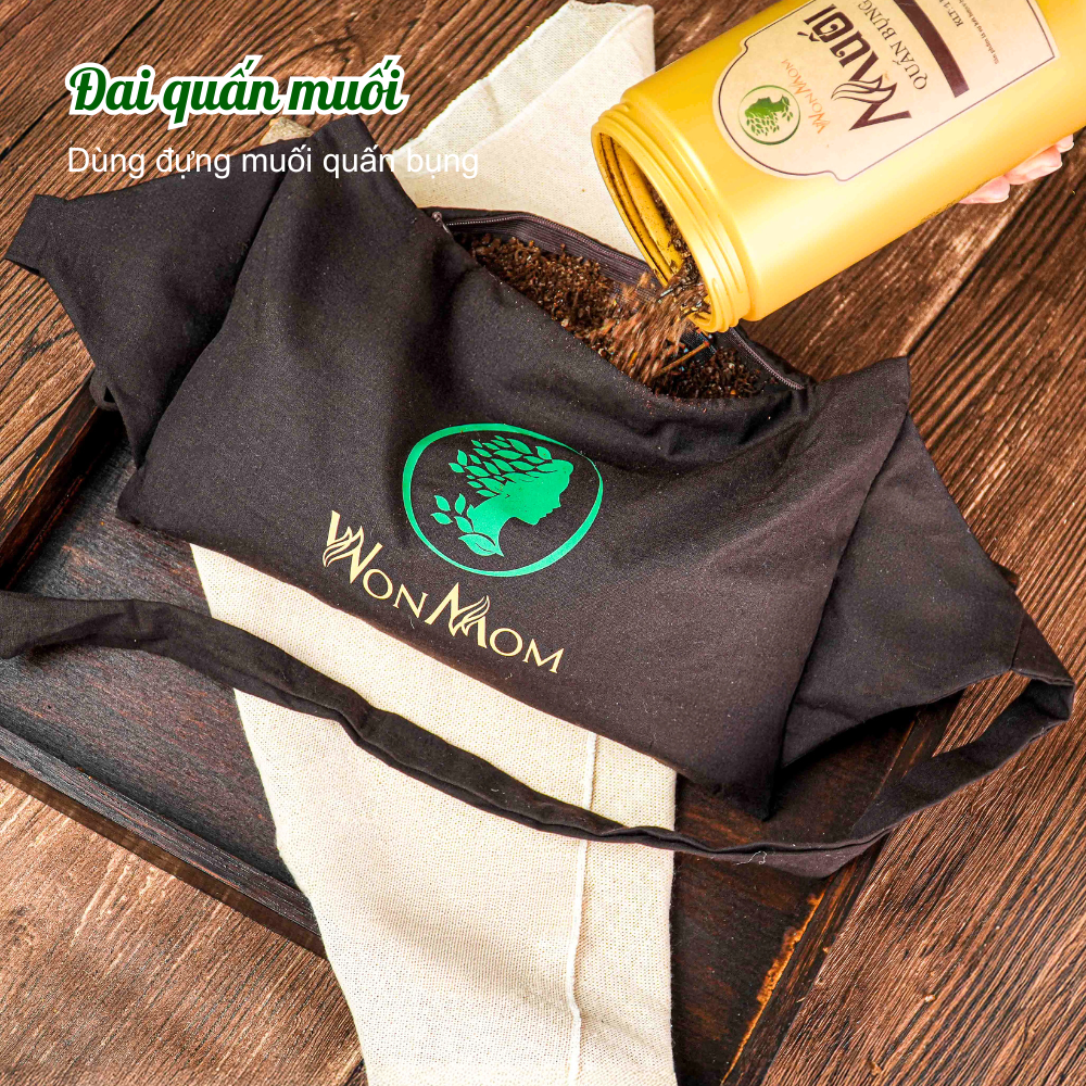 ✨Bộ giảm eo sau sinh Wonmom ( 4 Muối quấn bụng + 1 Dầu gừng + 1 Gen nịt bụng + 1 Đai muối )