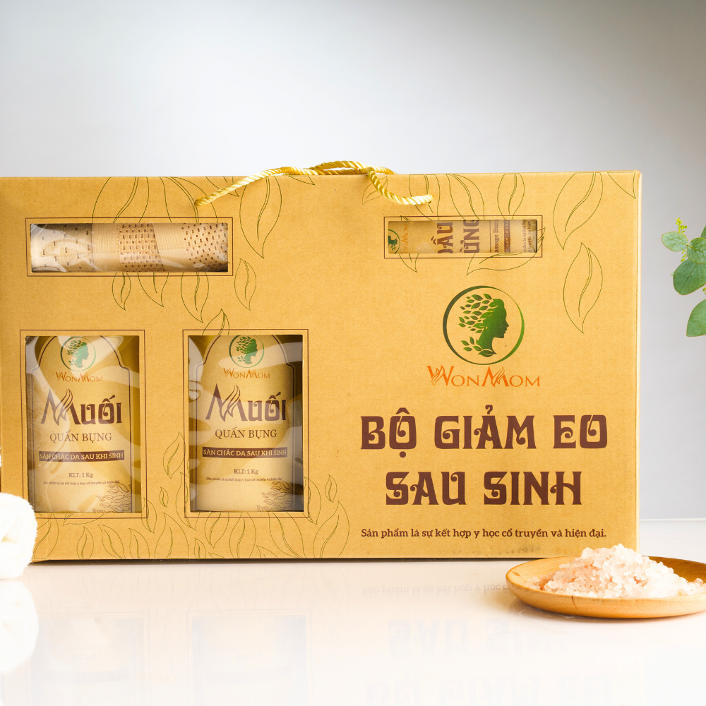 Mua tại Tiktok- Giới thiệu: Bộ săn eo sau sinh Wonmom gồm: 4 hộp muối quấn bụng, 1 chai dầu gừng, 1 đai quấn muối và 1 gen nịt bụng.