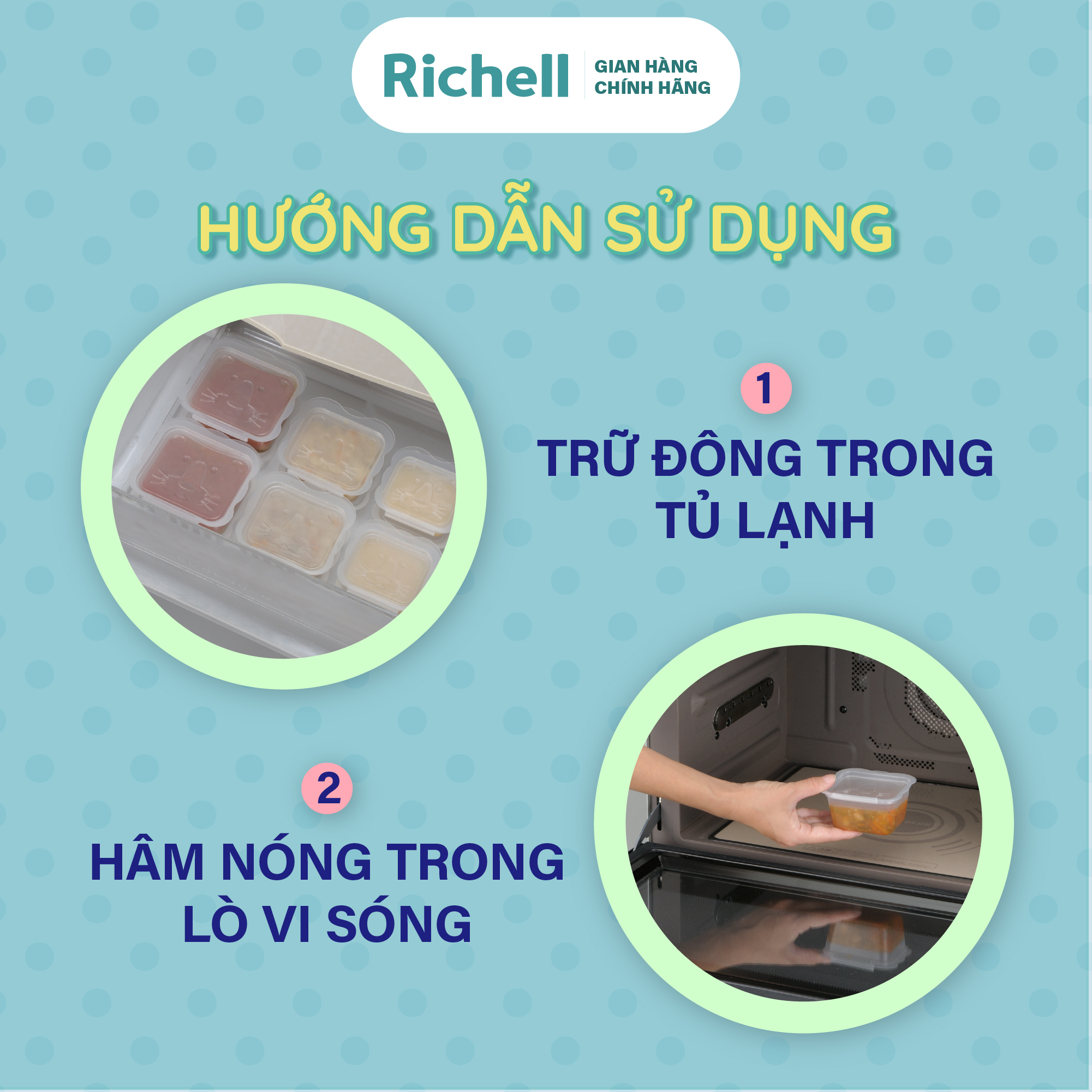 - Bộ hộp chia & trữ thức ăn dặm Richell là người bạn không thể thiếu trong khâu chế biến thức ăn dặm của mẹ hiện đại. Giúp mẹ lên kế hoạch menu bữa ăn khoa học hơn.