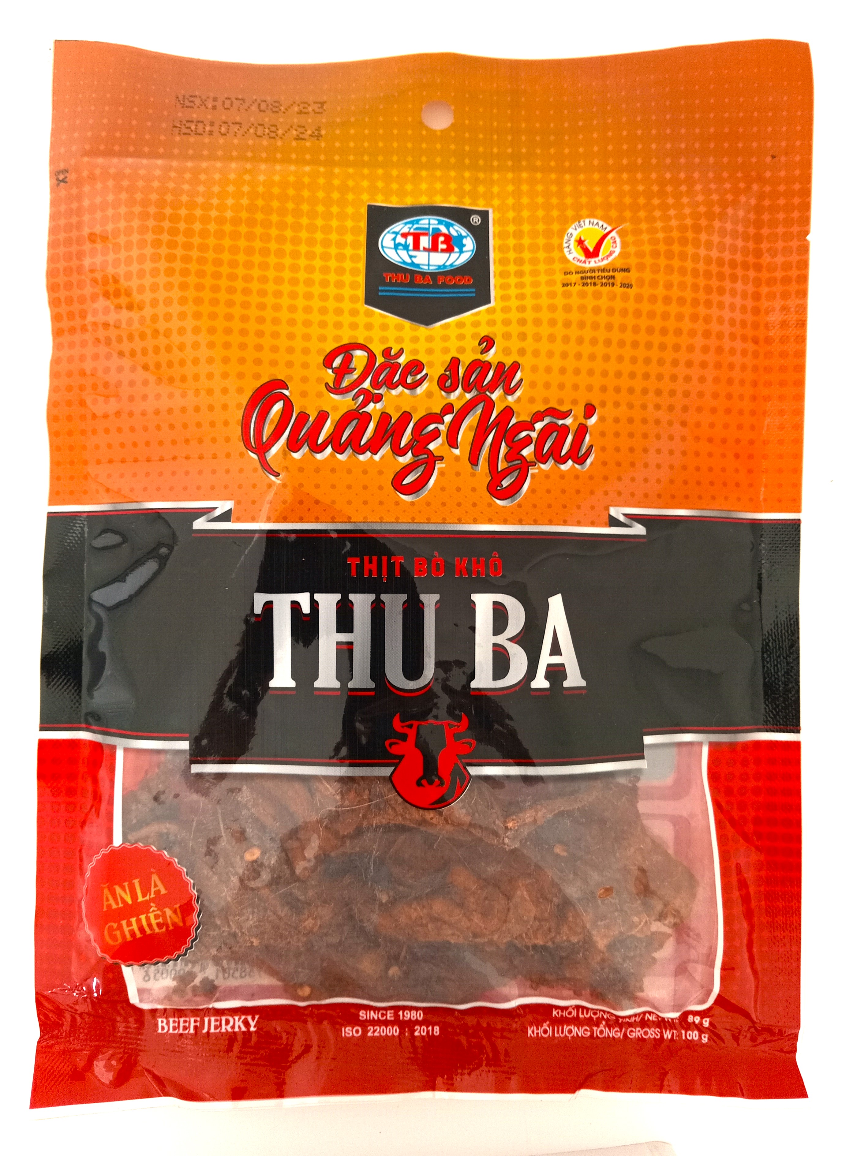 BÒ KHÔ THU BA là món đặc sản Quảng Ngãi, đạt tiêu chuẩn ISO 22000:2018 và là Hàng Việt Nam Chất Lượng Cao do Người tiêu dùng bình chọn Sản phẩm được sản xuất theo công thức