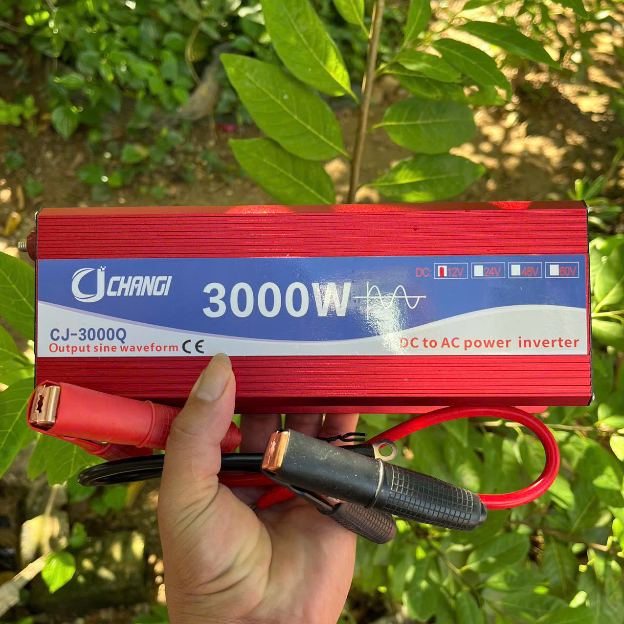 Bộ Kích Điện Inverter 12V-220V 3000W Sóng Sin Chuẩn là giải pháp lý tưởng giúp bạn chủ động nguồn điện trong mọi tình huống. Với khả năng chuyển đổi điện từ ắc quy 12V sang dòng điện xoay chiều 220V chuẩn sóng sin, sản phẩm hoạt động ổn định, an toàn và tương thích cao với hầu hết các thiết bị điện dân dụng. Tính Năng Nổi Bật: - Công suất mạnh mẽ 3000W – Dễ dàng vận hành các thiết bị công suất lớn như: máy bơm, tủ lạnh mini, quạt điện, laptop, đèn chiếu sáng, nồi cơm... - Sóng sin chuẩn 100% – Cho dòng điện ổn định, không làm hư hại thiết bị, đặc biệt phù hợp với thiết bị điện tử, điện gia dụng nhạy cảm. - Dùng cho ô tô, xe tải – Biến nguồn điện từ ắc quy thành điện xoay chiều tiện dụng khi đi dã ngoại, du lịch, xe bán hàng lưu động... - ️ Tương thích điện mặt trời – Kết hợp với hệ thống năng lượng mặt trời để lưu trữ và chuyển đổi điện dùng khi mất điện hoặc vùng không có điện lưới. - ️ Thiết kế an toàn – độ bền cao – Bo mạch chất lượng, vỏ kim loại chắc chắn, chống cháy nổ, chống quá tải, quá nhiệt, ngắn mạch. - Cực kỳ tiện lợi khi mất điện – Cung cấp điện tạm thời cho gia đình, văn phòng, nhà xưởng trong mùa mưa bão hoặc cúp điện đột ngột. Thông Số Kỹ Thuật: - Điện áp đầu vào: DC 12V - Điện áp đầu ra: AC 220V ±5% - Công suất cực đại : 3000w - Công suất định mức: 2000W - Tần số: 50Hz - Dạng sóng: Sóng Sin Chuẩn (Pure Sine Wave) - Hệ thống bảo vệ: Quá tải, quá nhiệt, quá dòng, chống ngắn mạch Ứng Dụng Thực Tế: - Gia đình: Dùng khi mất điện, chạy các thiết bị sinh hoạt cơ bản. - Xe hơi, xe tải: Cắm nồi cơm, laptop, thiết bị sạc điện… khi đi xa. -