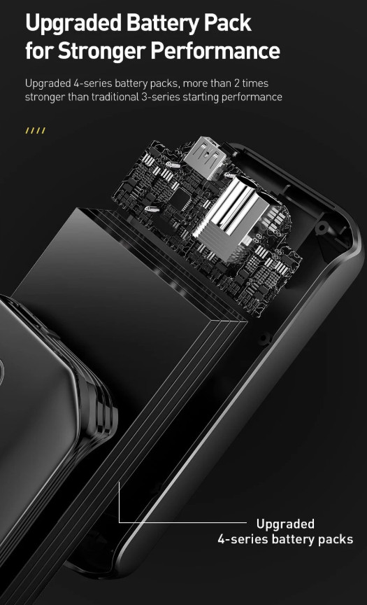 - Hiệu năng pin được nâng cấp để có hiệu suất mạnh hơn, có thể sử dụng 8-10 lần kích nổ ô tô khi được sạc đầy.