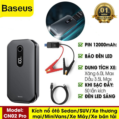 Bộ kích nổ oto Baseus 12000MAh Car Jump Starter Power Bank 12V SOS chiếu sáng 1000A Sạc dự phòng
