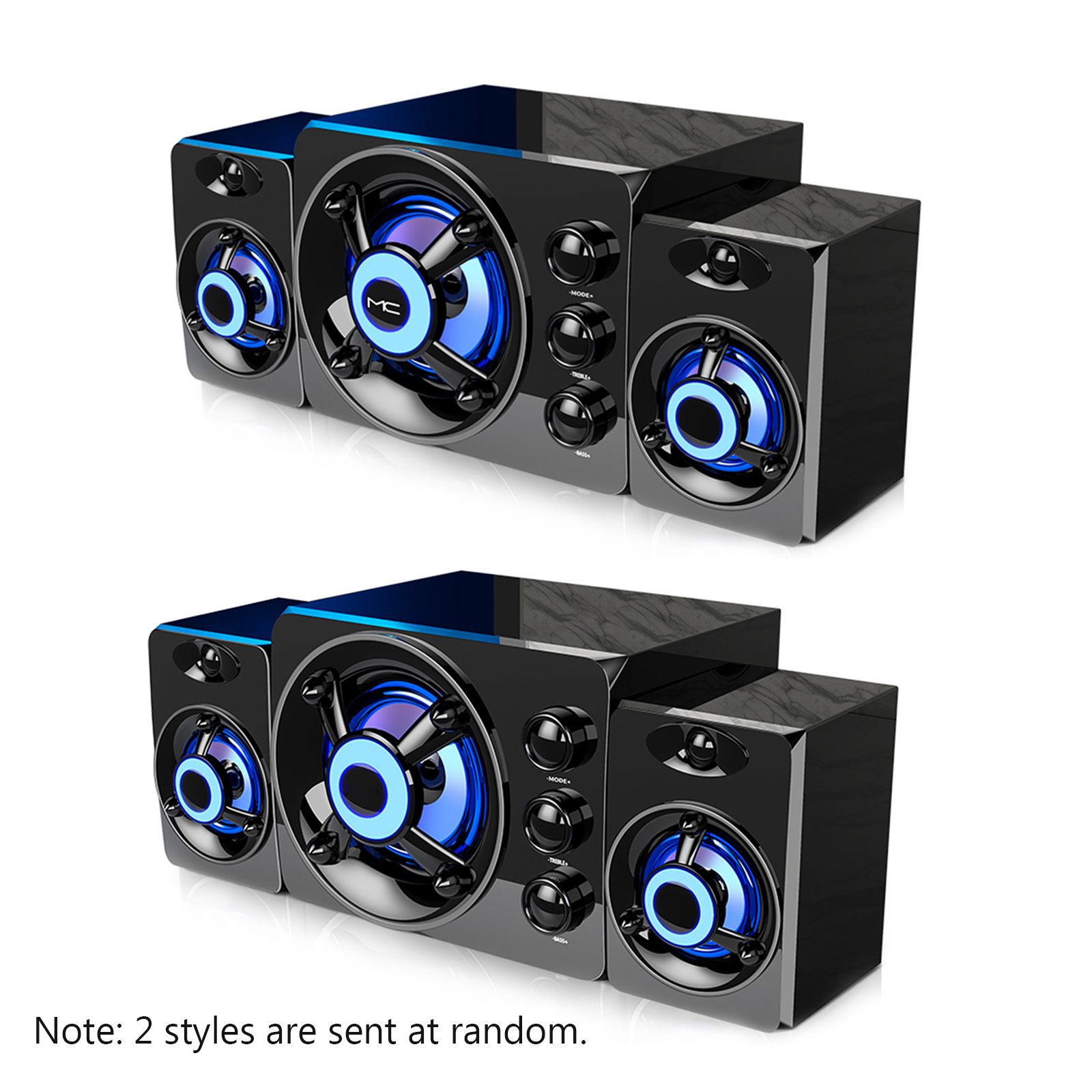Features: Equipped with bass phase reversal hole, let the bass more shocking. Independent knobs, volume, treble, and bass can be adjusted separately. Ice blue atmosphere lamp, full of sense of science and technology, gorgeous lighting.