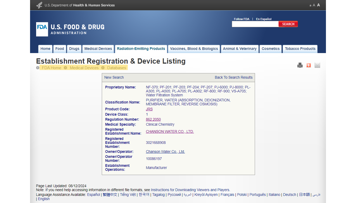 Bộ lọc SF, cũng là bộ lọc C3 của Chanson bán ở Mỹ và các nước châu Âu. Chức năng loại bỏ các tạp chất độc hại trong nước như chloramines, chì, arsenic, sulfur, thuốc