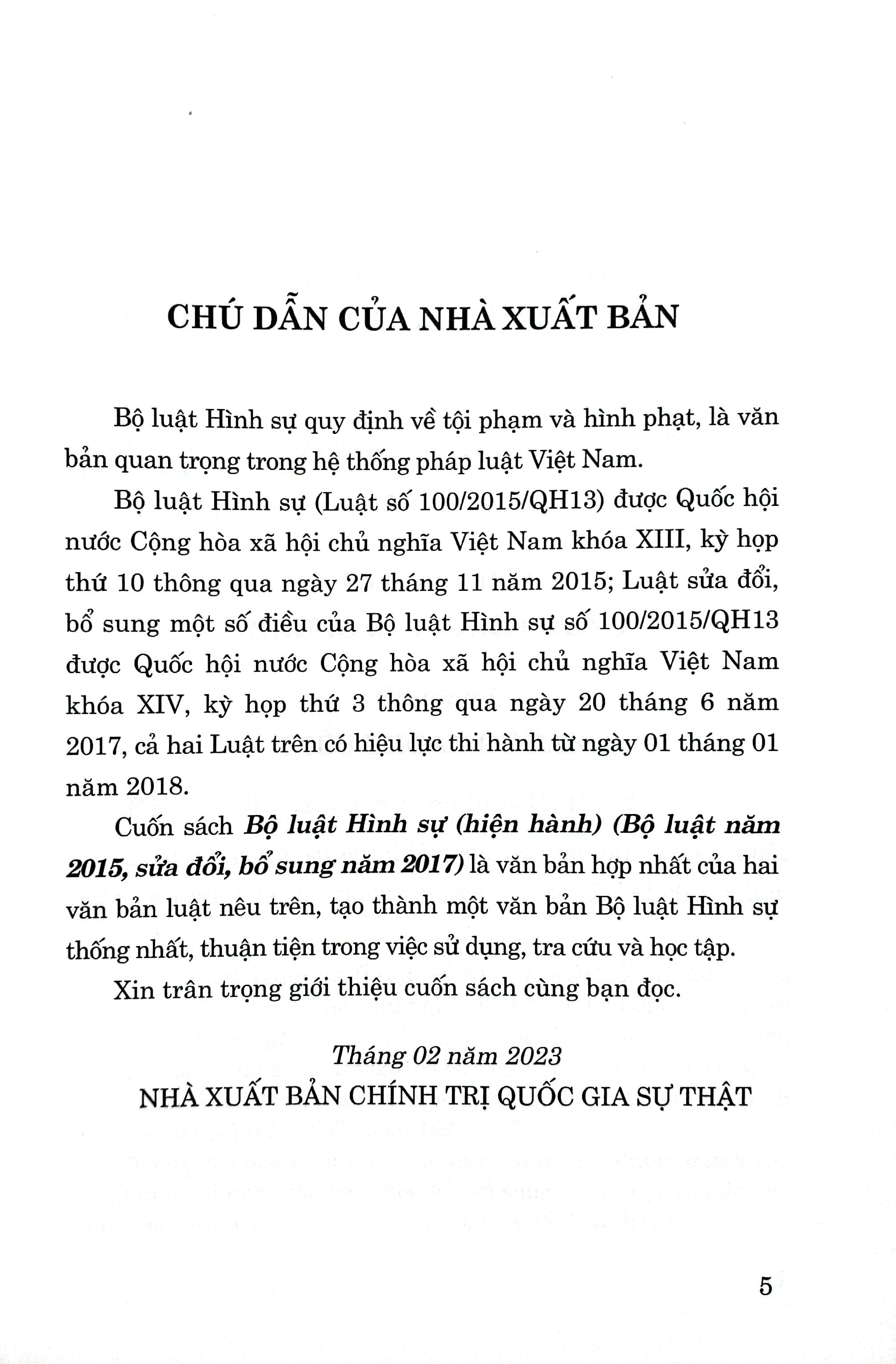 ✨Bộ luật Hình sự (Hiện hành) (Bộ luật năm 2015, sửa đổi, bổ sung năm 2017)