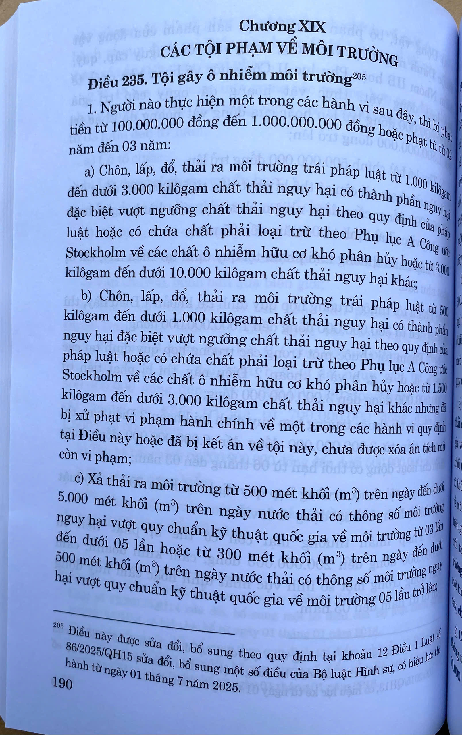 Mua tại TiktokTại Kỳ họp thứ 9 Quốc hội nước Cộng hòa xã hội chủ nghĩa Việt Nam khóa XV đã thông qua Luật số 86/2025/QH15 ngày 25 tháng 6 năm 2025 của Quốc hội ban hành Luật sửa đổi, bổ sung một số điều của Bộ luật Hình sự số 100/2015/QH13 đã được sửa đổi, bổ sung một số điều theo Luật số 12/2017/QH14 và Luật số 59/2024/QH15. Luật có hiệu lực áp dụng từ ngày 01 -07-2025