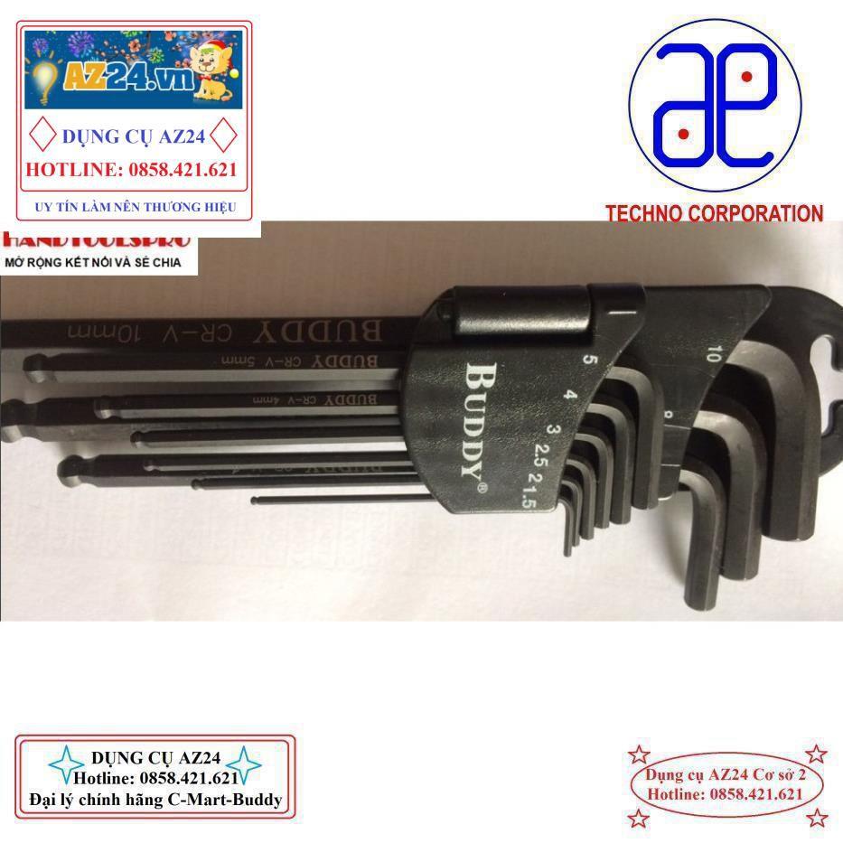 - Bộ lục giác 9 chi tiết BUDDY có thể vặn các bu lông có kích thước từ 1.5mm đến 10mm.