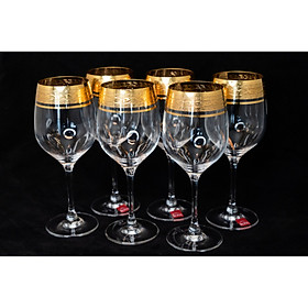 Sản phẩm có 3 lựa chọn dung tích: 240ml 360ml 450 ml Quy cách đóng gói: 6 cái/bộ/hộp Ly rượu vang viền miệng mạ vàng, hoa văn chi tiết, tinh tế tạo điểm nhấn sang