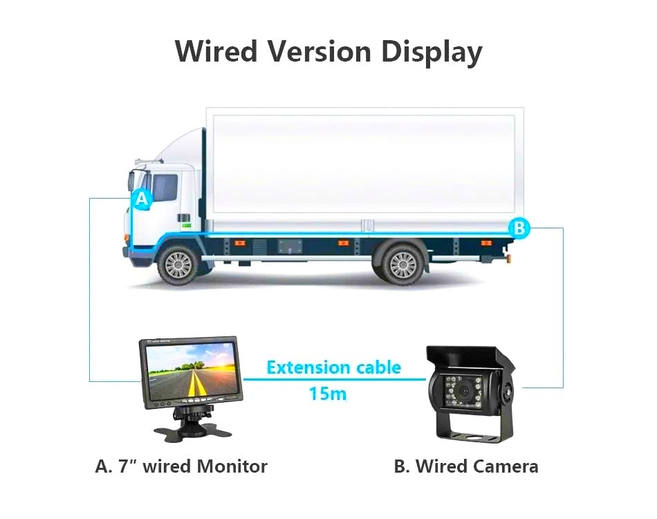 ✨Bộ Màn Hình Camera Lùi Cho Xe Tải 24V 7.0 Inch Cáp 15M Camera 18 LED Hồng Ngoại Nhìn Trong Đêm Cho Xe Buýt Xe Tải Container Xe Công Trình