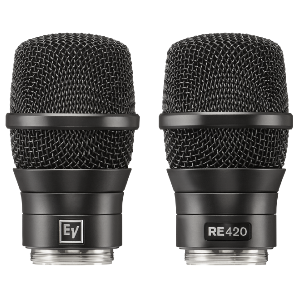 Bộ không dây cầm tay UHF có đầu micro cardioid ngưng tụ RE420 để biểu diễn giọng hát và thuyết trình. Âm thanh của RE420 phong phú, chi tiết và đầy đặn, với dải âm trầm ấm áp và rõ ràng, âm trung tự nhiên và rộng mở, còn âm cao trong trẻo, sắc nét và chi tiết
