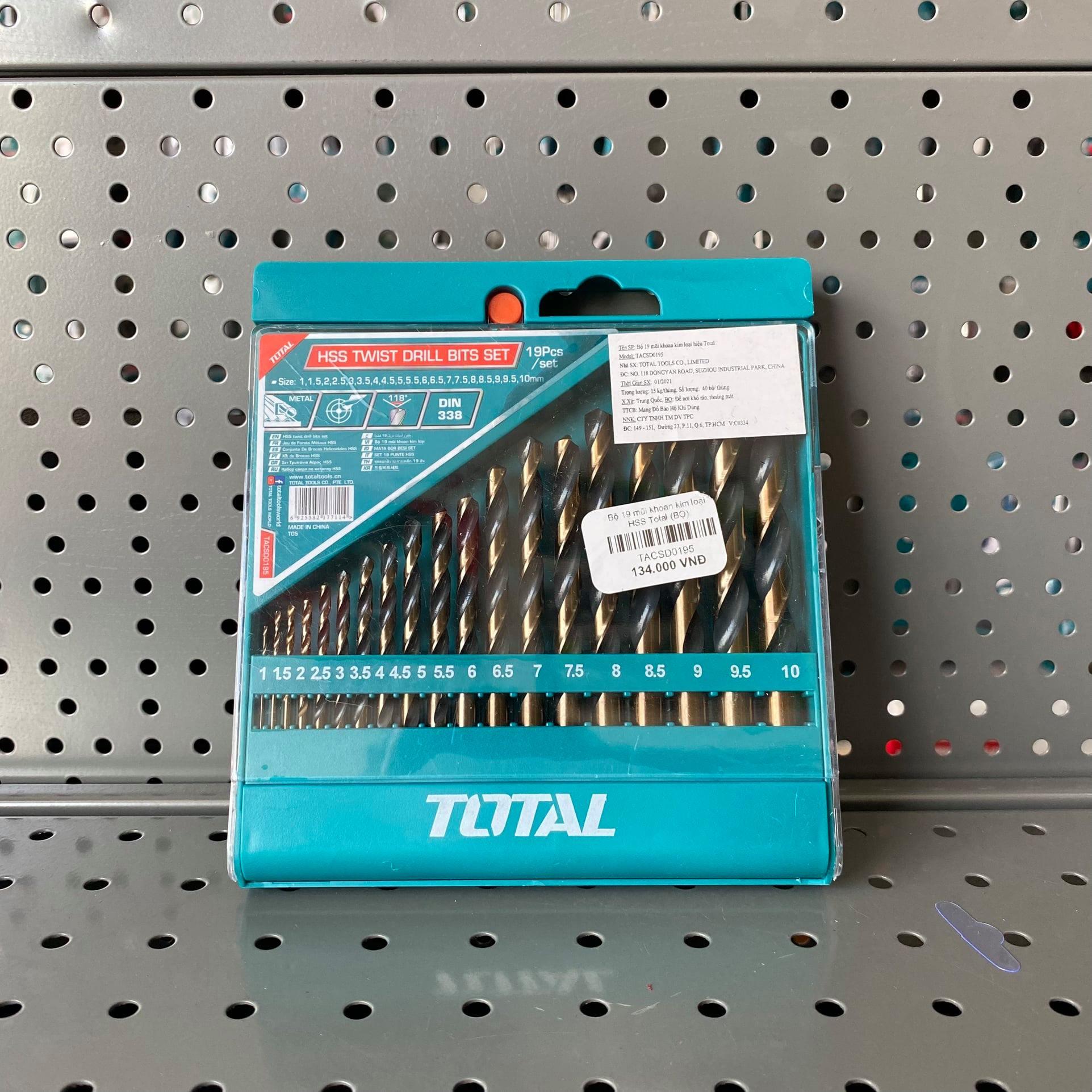 -Bộ 19 mũi khoan HSS gồm các size: 1,1.5,2,2.5,3,3.5,4,4.5,5,5.5,6,6.5,7,7.5,8,8.5,9,9.5,10 mm,