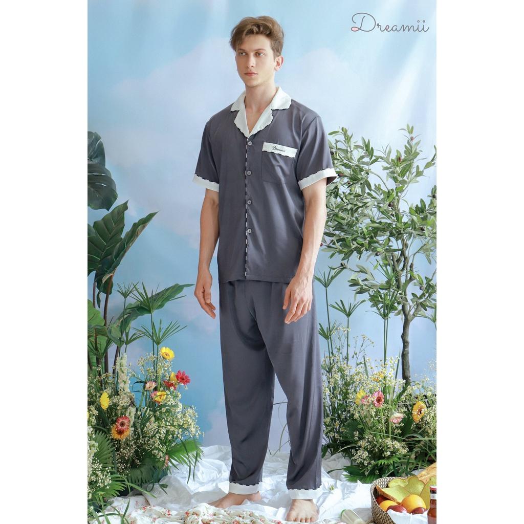 [DREAMII] Bộ ngủ nam dài tay King Thiết kế: Với thiết kế áo dài và quần dài làm tôn nên phong thái lịch lãm. Chiếc cổ áo cách tân cùng chiếc túi áo cũng là