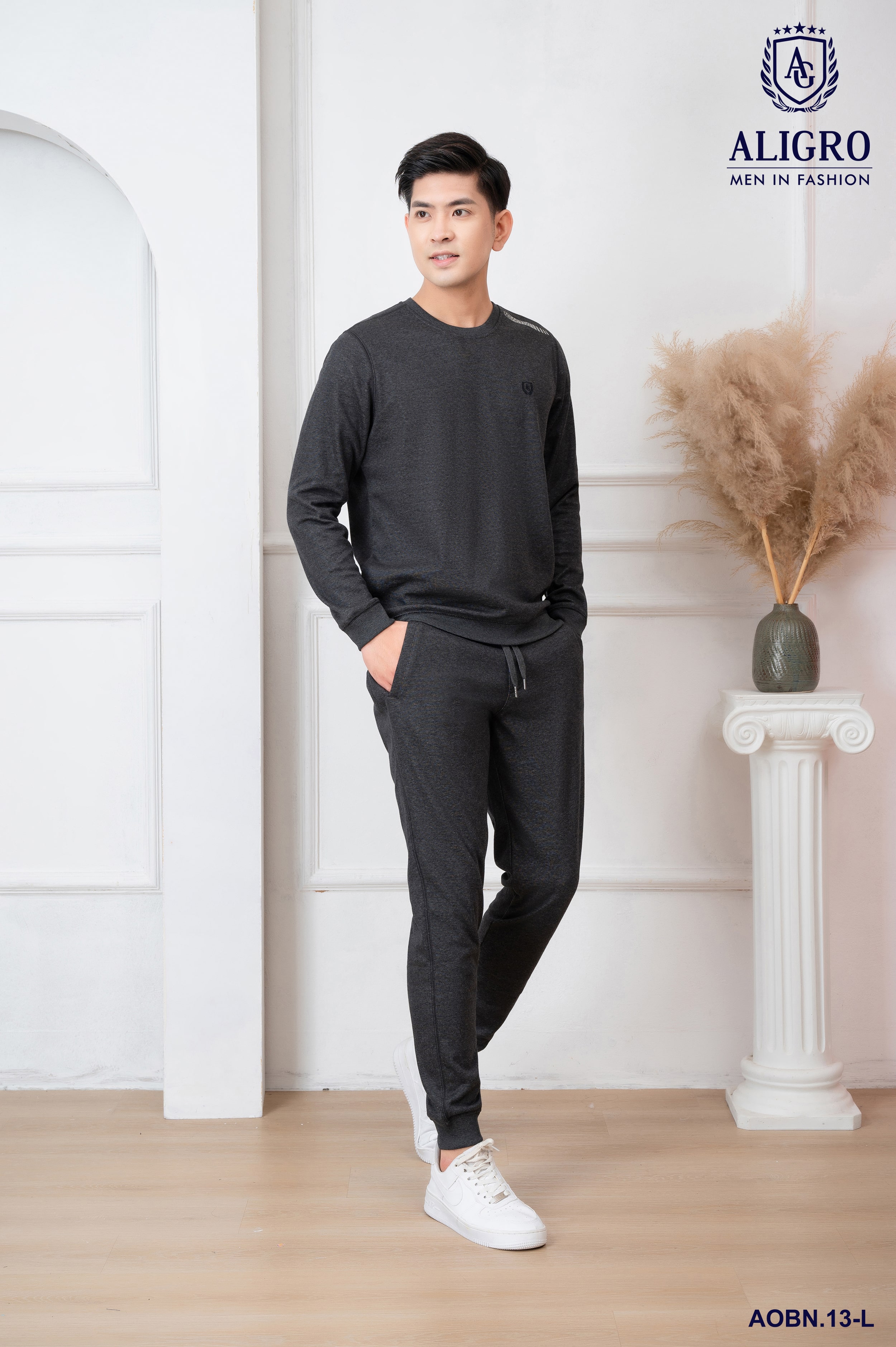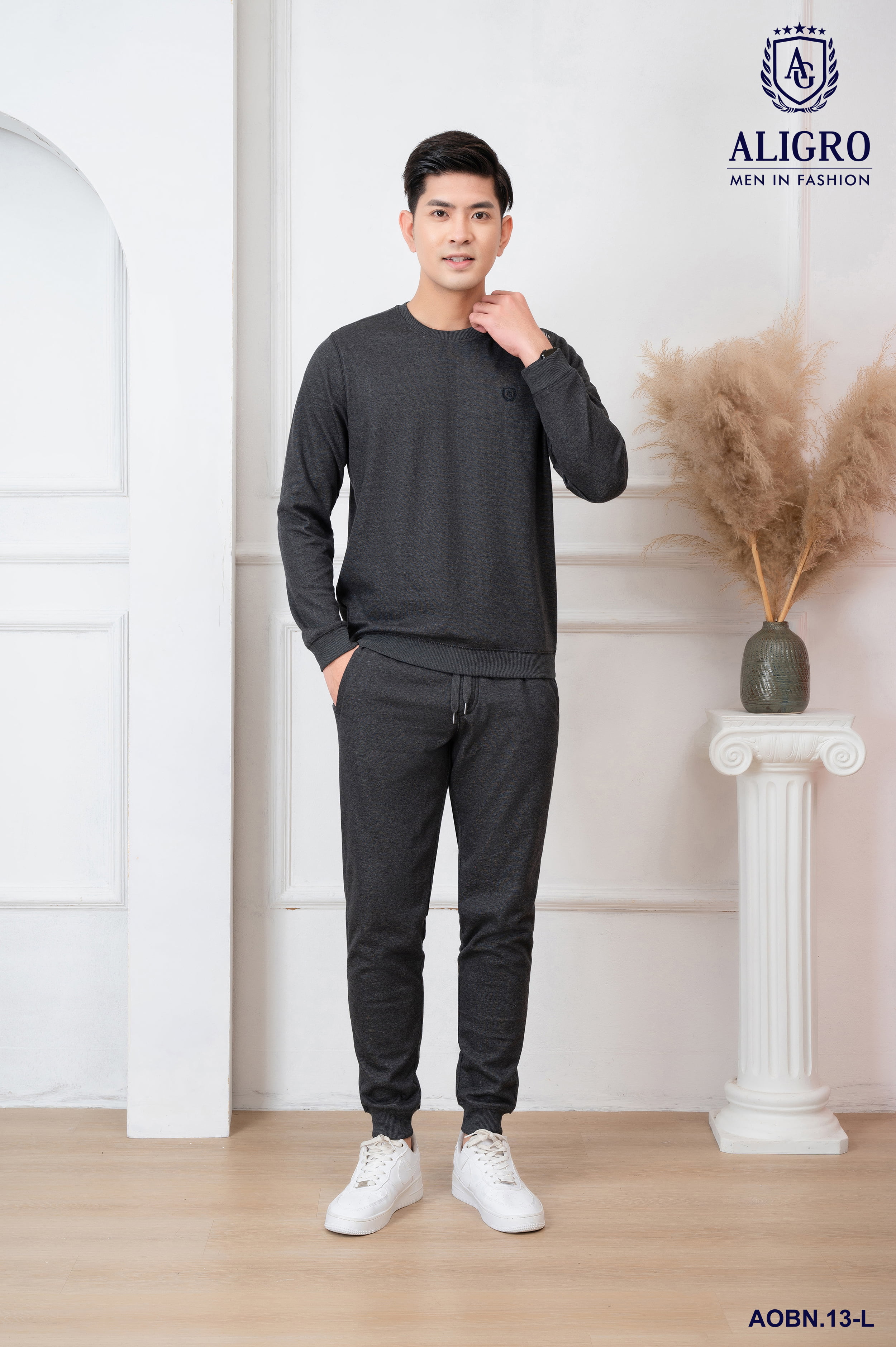 ✨Bộ nỉ ALIGRO cổ tròn màu ghi đậm BN.13