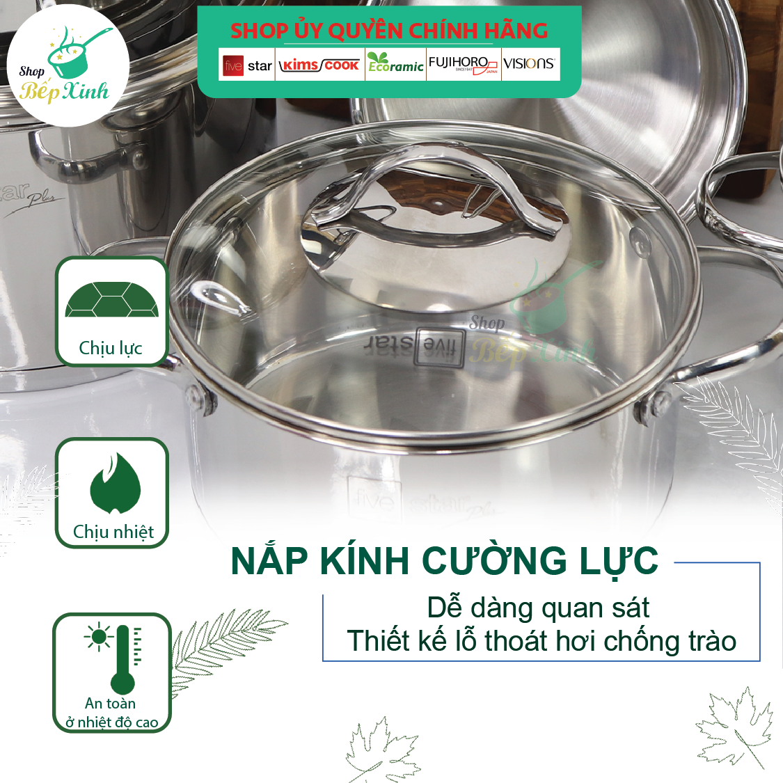 Bộ nồi Five Star Cao Cấp inox 304 Kitchi Nắp Kính mới