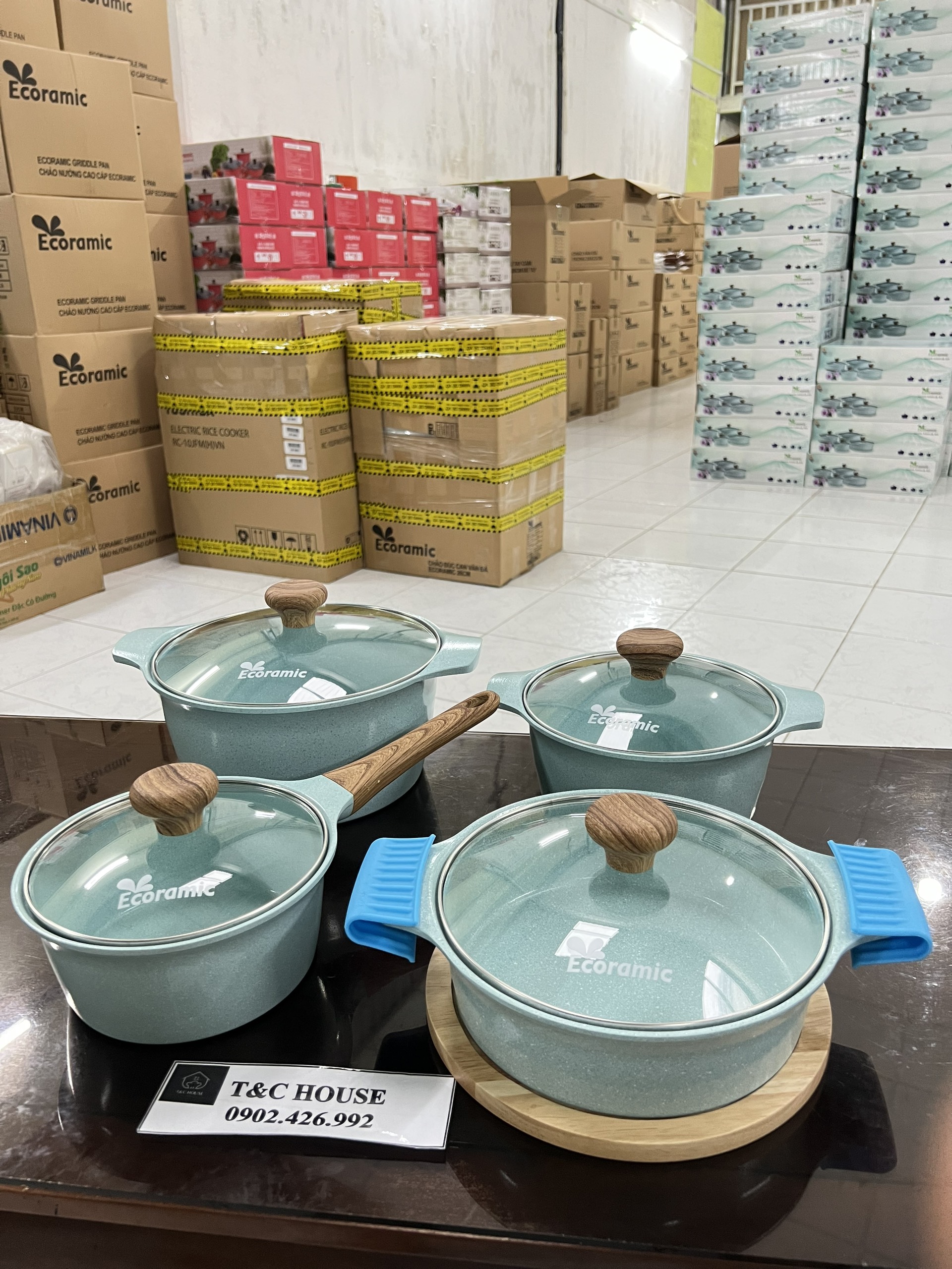 Set gồm 6 món tiện dụng: • Chảo nhỏ 20cm & chảo lớn 24cm • Quánh nhỏ 16cm & quánh lớn 18cm (đều kèm nắp) • Nồi nhỏ 24cm & nồi lớn 24cm (đều kèm