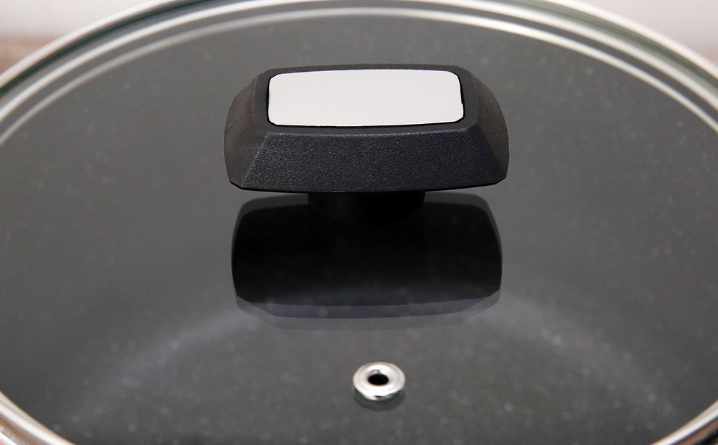 Nắp nồi bằng chất liệu kính cường lực dày dặn, viền inox chắc chắn, có lỗ thoát hơi nước, chống bể vỡ khi rơi hay va chạm, giúp bạn quan sát thực phẩm trong khi nấu mà không phải mở nắp ra nhiều lần.