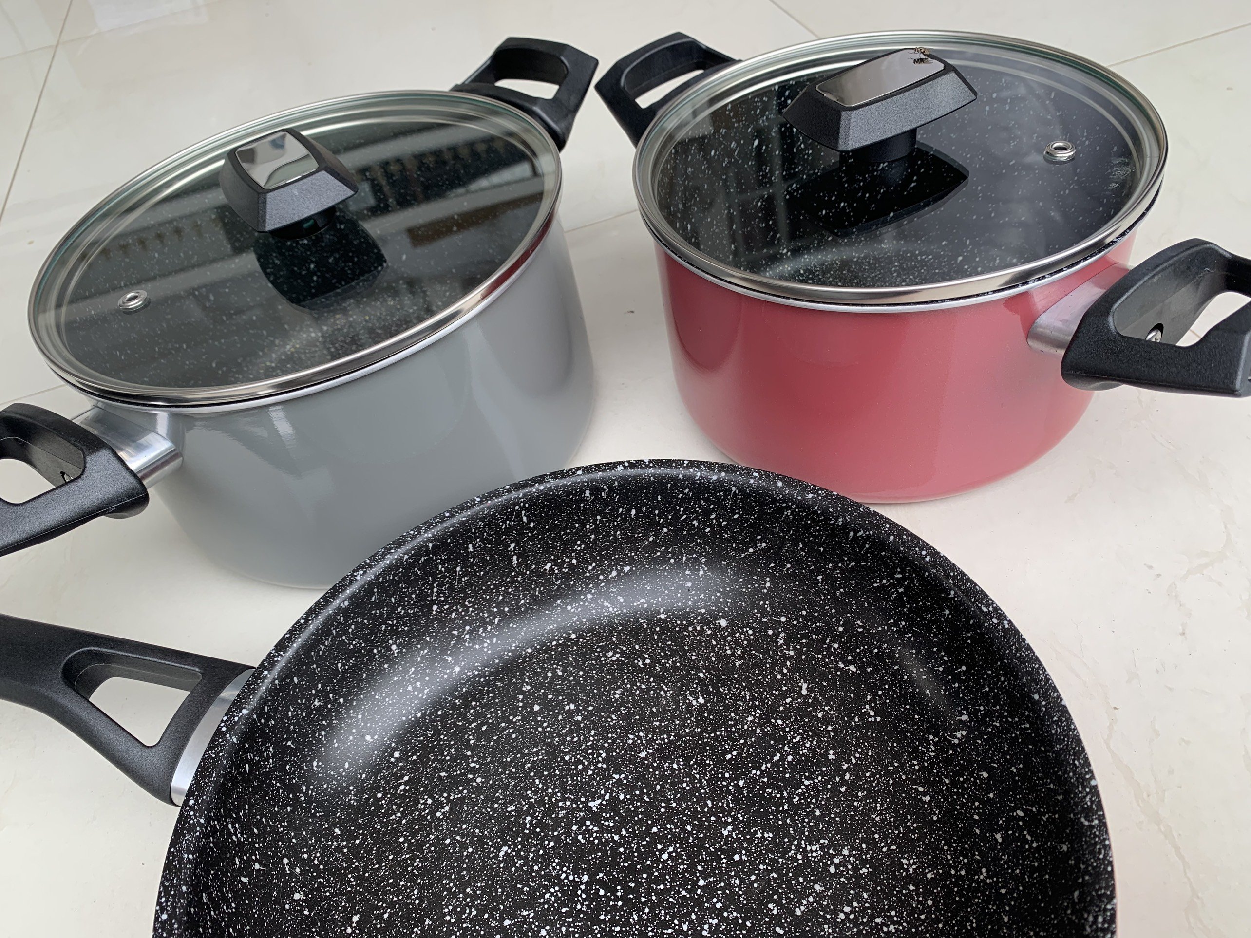 ✨Bộ nồi chảo đáy từ 3 món gồm 2 nồi 18-20cm, 1 chảo 24cm Easy Kimscook chống dính vân đá Hàn Quốc