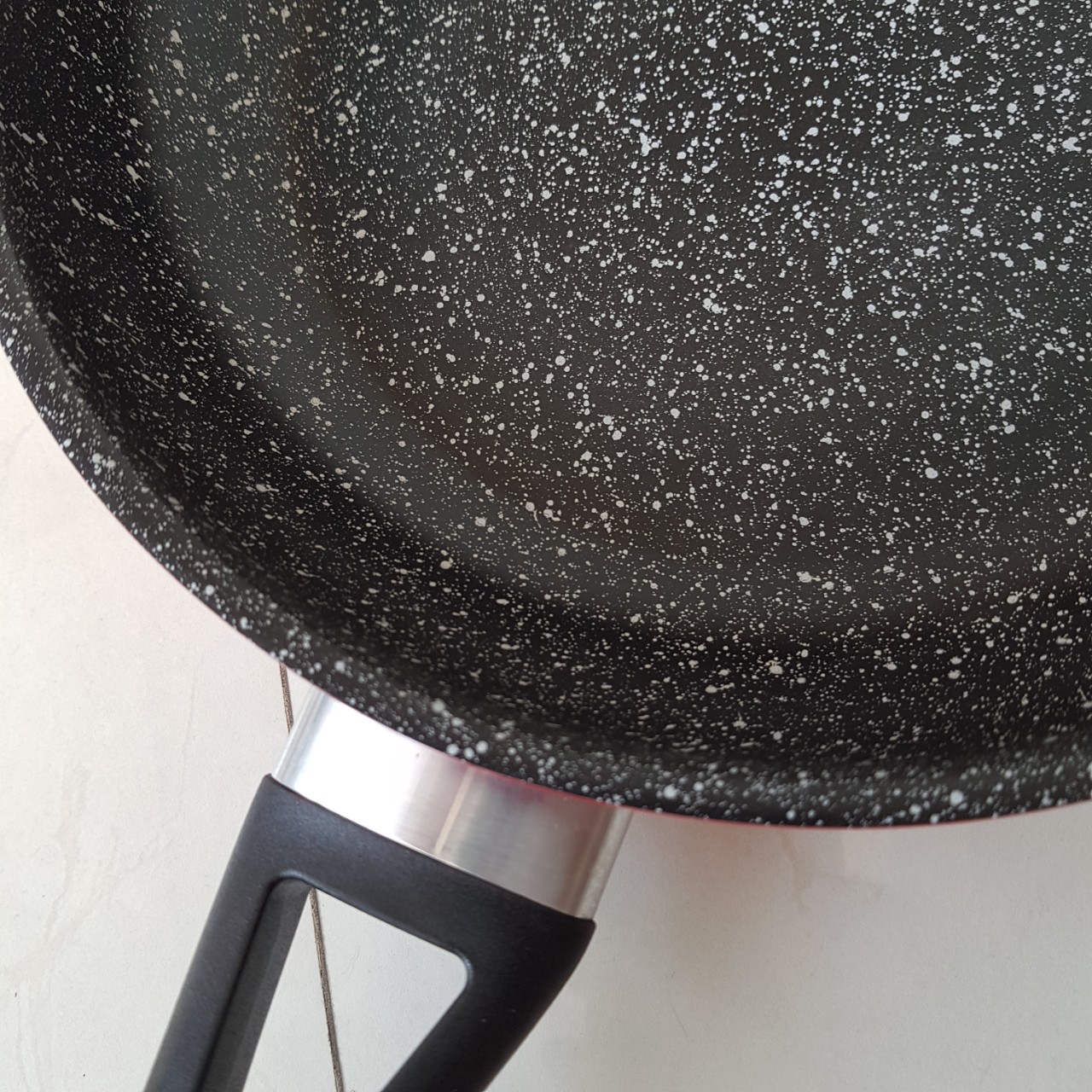Bề mặt nồi chảo được xử lý bằng chất liệu chống oxy hóa sau đó được phủ lớp chống dính PTFE vân đá cao cấp sang trọng, chịu được nhiệt độ lên tới 450 độ C, không phản ứng với thức ăn, khả năng chống dính tốt.