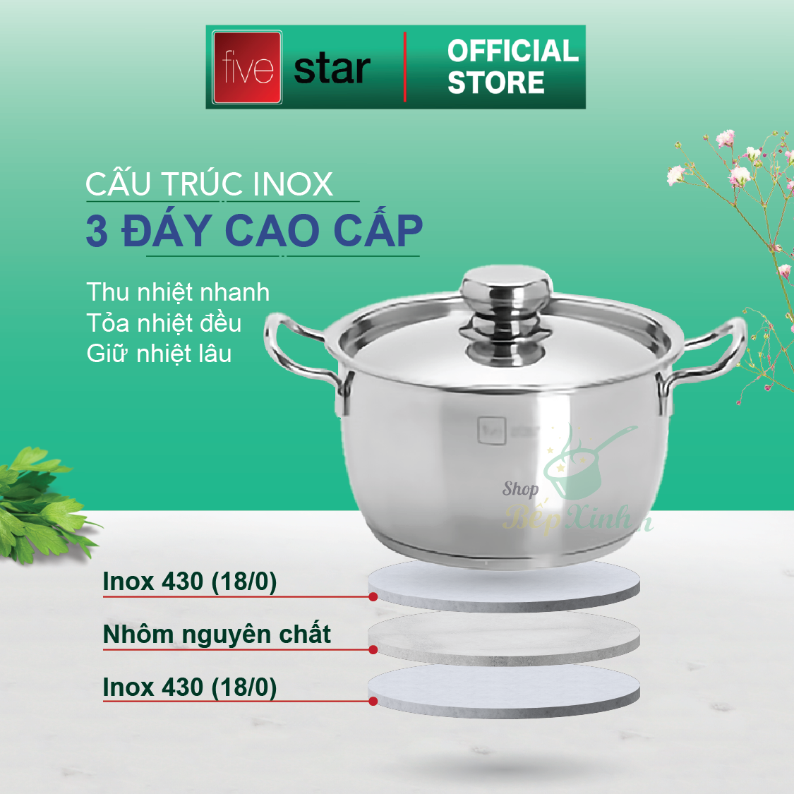 Mua tại TiktokBộ nồi inox Fivestar 3 đáy bếp từ nắp inox