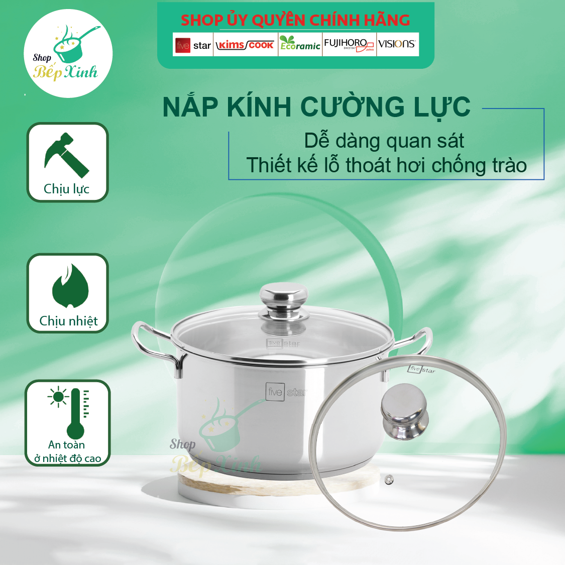 Nồi inox 3 đáy Fivestar FSN 24cm nắp inox đến từ thương hiệu Fivestar nổi tiếng Việt Nam, sản xuất tại Việt Nam. Nồi có thiết kế sang trọng với kích cỡ 24cm được làm từ chất liệu